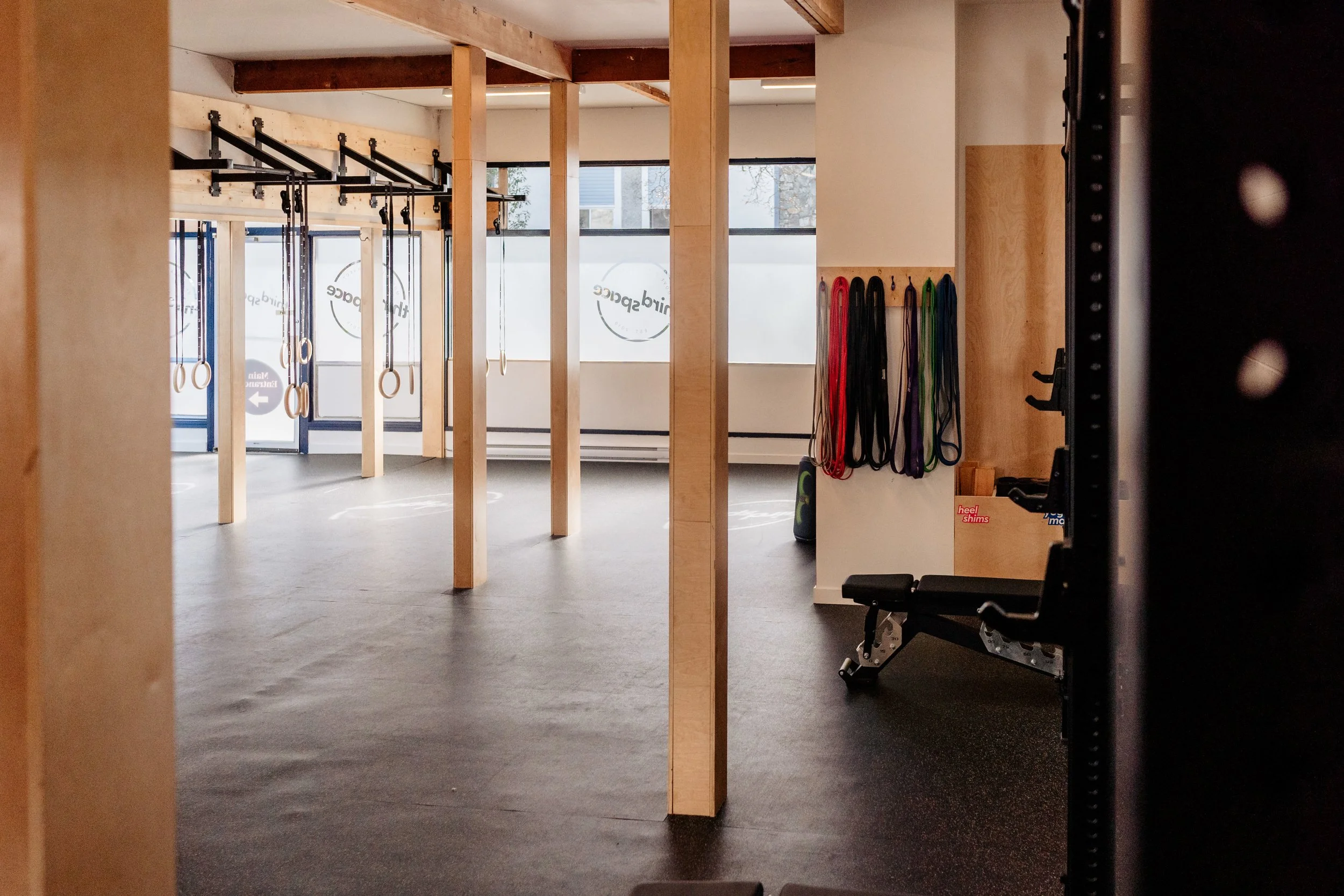 Our biggest space is perfect for larger events, training, and workshops. Comes with lots of equipment, including: benches, boxes, medicine balls, slam balls, barbells and plates, kettlebells, battle ropes, yoga props, and more. There is a large bay door that can open up in warmer weather.